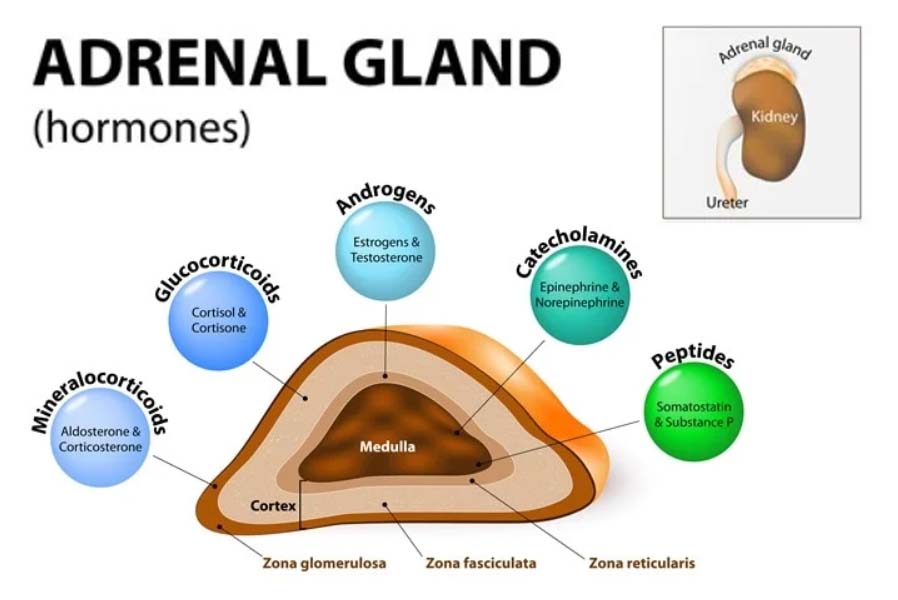 Adrenal disorders refer to medical conditions that affect the adrenal glands, which are located on top of the kidneys. These glands produce essential hormones that regulate various bodily functions, including metabolism, blood pressure, immune response, and stress response. Adrenal disorders can result from dysfunction in hormone production or other abnormalities affecting the adrenal glands.